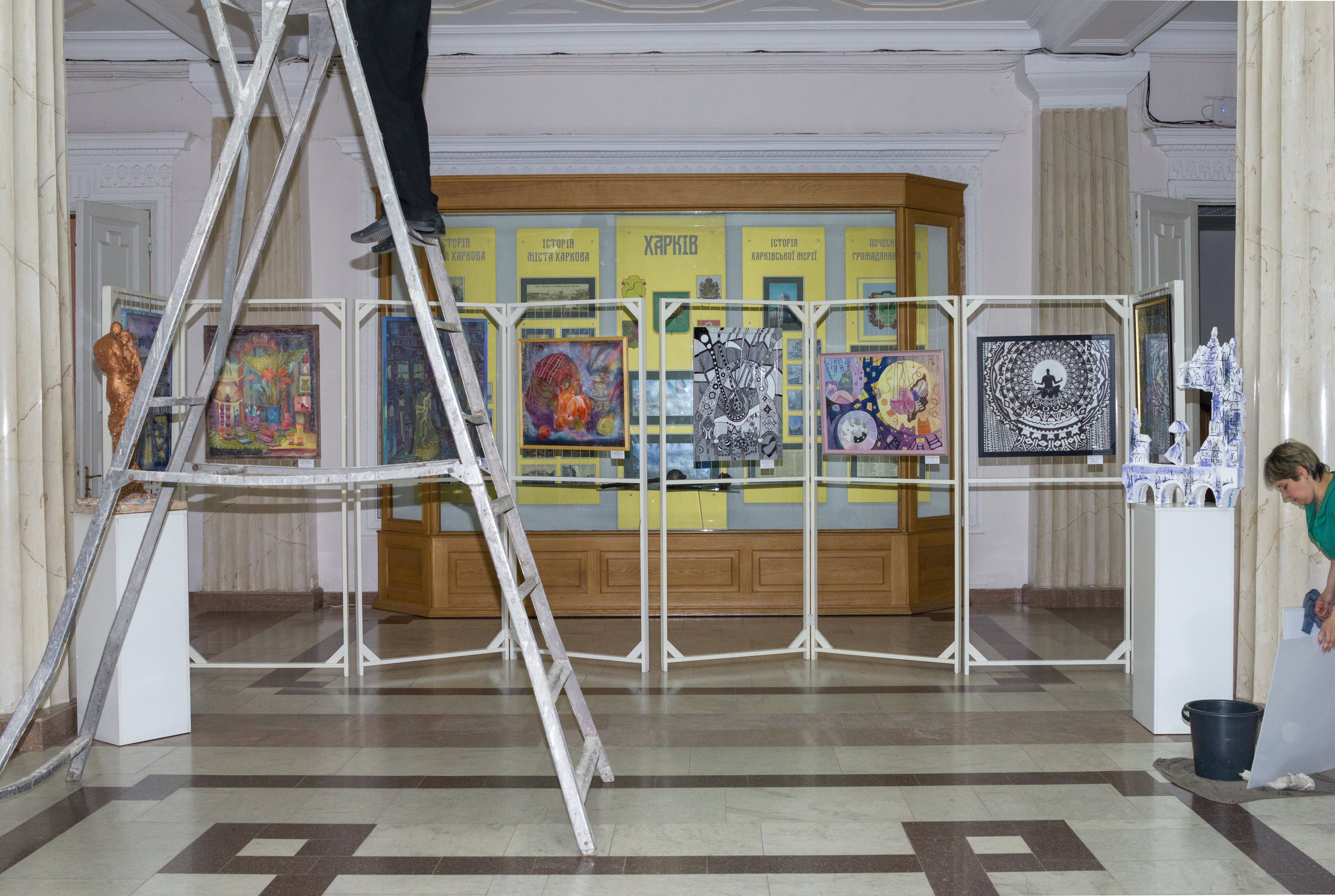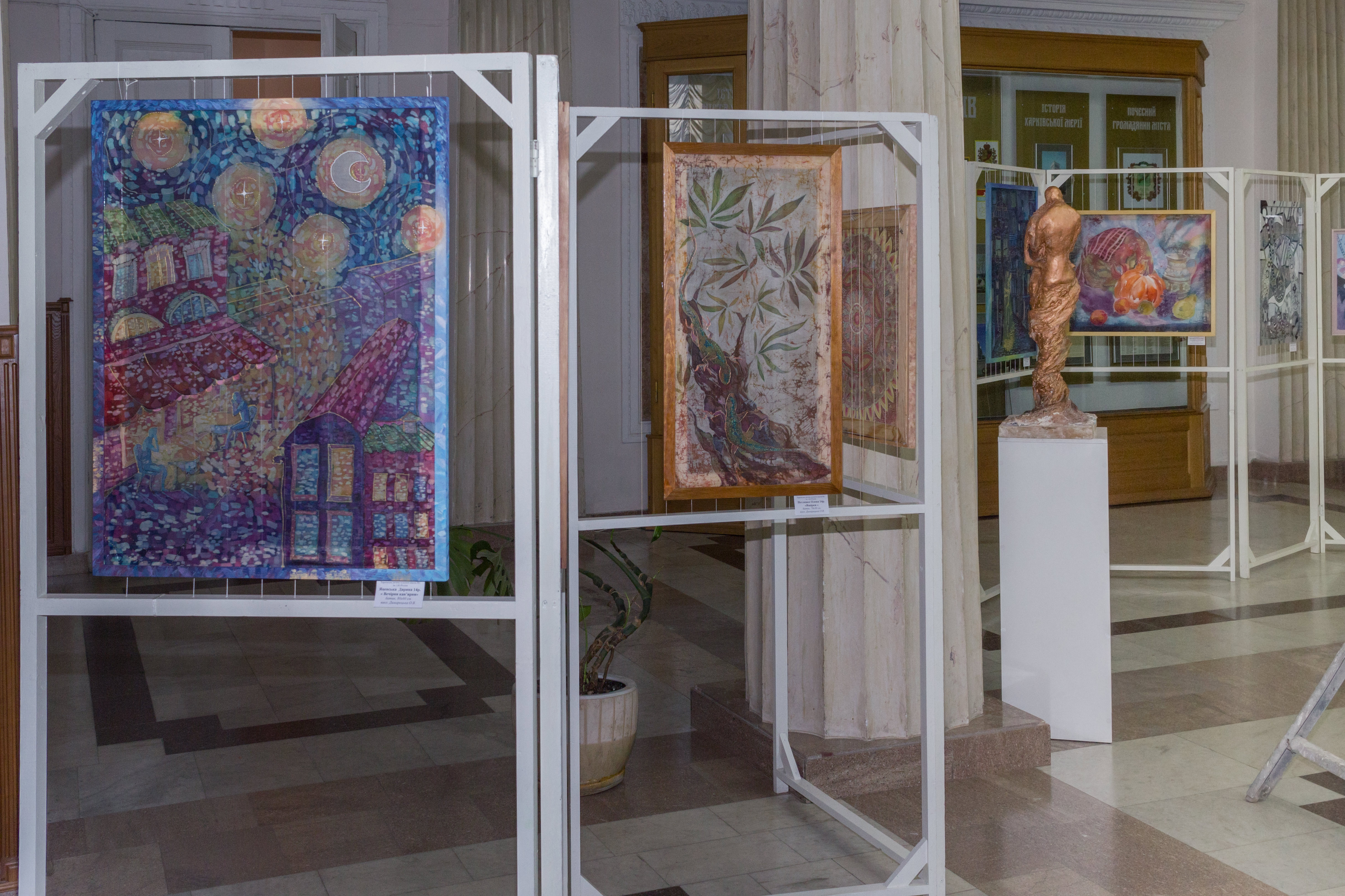 К торжественному мероприятию в Харьковском городском совете поставили выставку работ учеников ХДХШ №1. Холл и 2 этаж украсили работы по композиции, ДПИ и скульптуре.