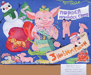 Переможець конкурсу Гран-При "Новогоднее письмо." Графський Ілля, 4-Ж клас. Його малюнок надрукували на запрошеннях.