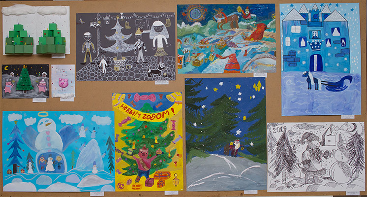 У конкурсі приймали участь учні в шести вікових категоріях. На розгляд журі подали 180 робот у двох номінаціях – новорічна композиція і новорічна листівка.