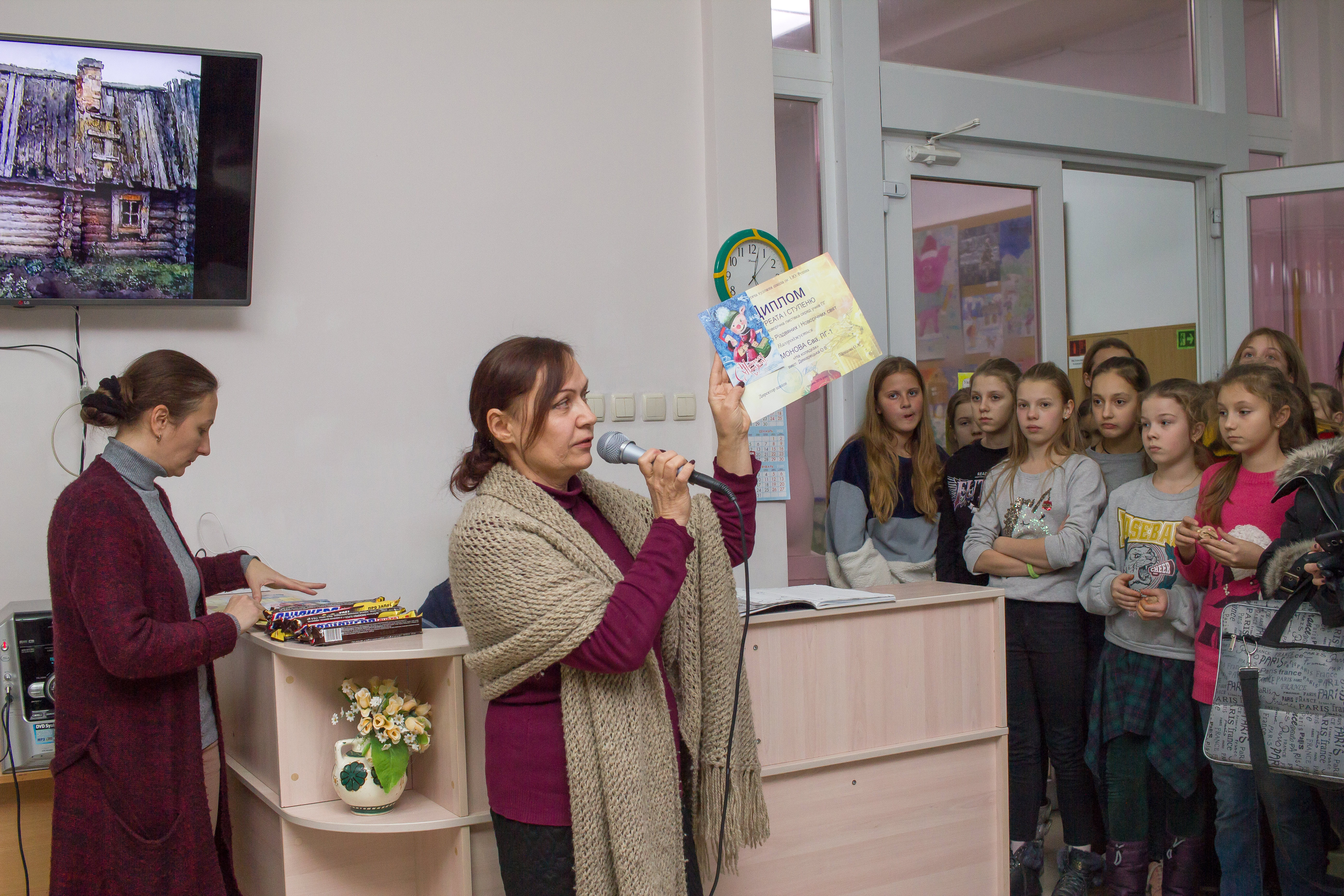 19 грудня в ХДХШ №1 ім. І.Ю. Рєпіна відбулося відкриття виставки–конкурсу до Новорічних і Різдвяних свят та нагородження переможців. Лауреати першого ступеню отримали запрошення на Новорічну ялинку нашого міста та солодкі подарунки.