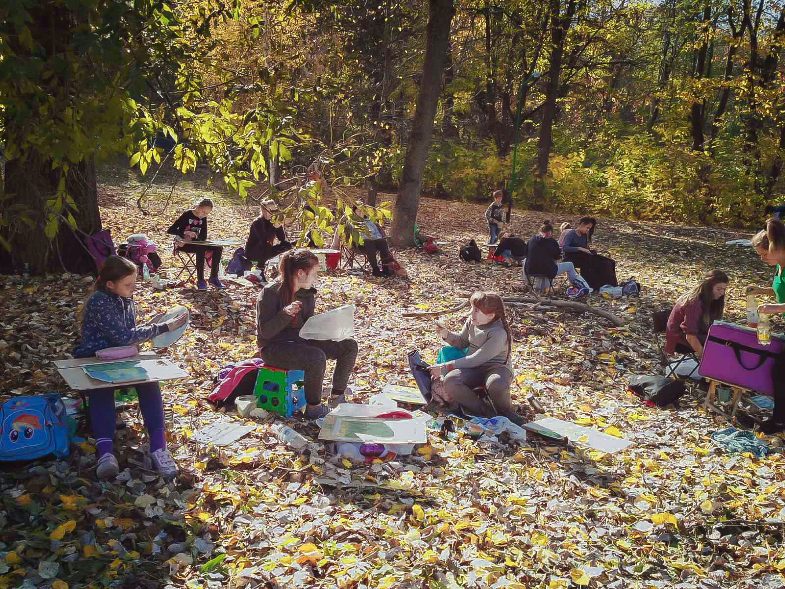 Викладачі Харківської дитячої художньої школи №1 ім.І.Ю.Рєпіна: Безрук І.О., Масьома Т.С., Звольська О.Ф., Чернуха Ю.Ф., Рута О.В., Димарецька О.В. і 80 учнів школи під керівництвом директора Шевцової Олени Андріївни виіхали до Бермінвод на етюди. Чисте повітря, чудові краєвиди, тепла погода посприяли створенню неповторних осінніх пейзажів в роботах Рєпінців.