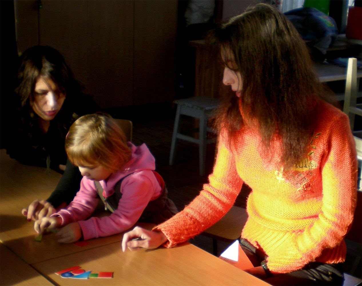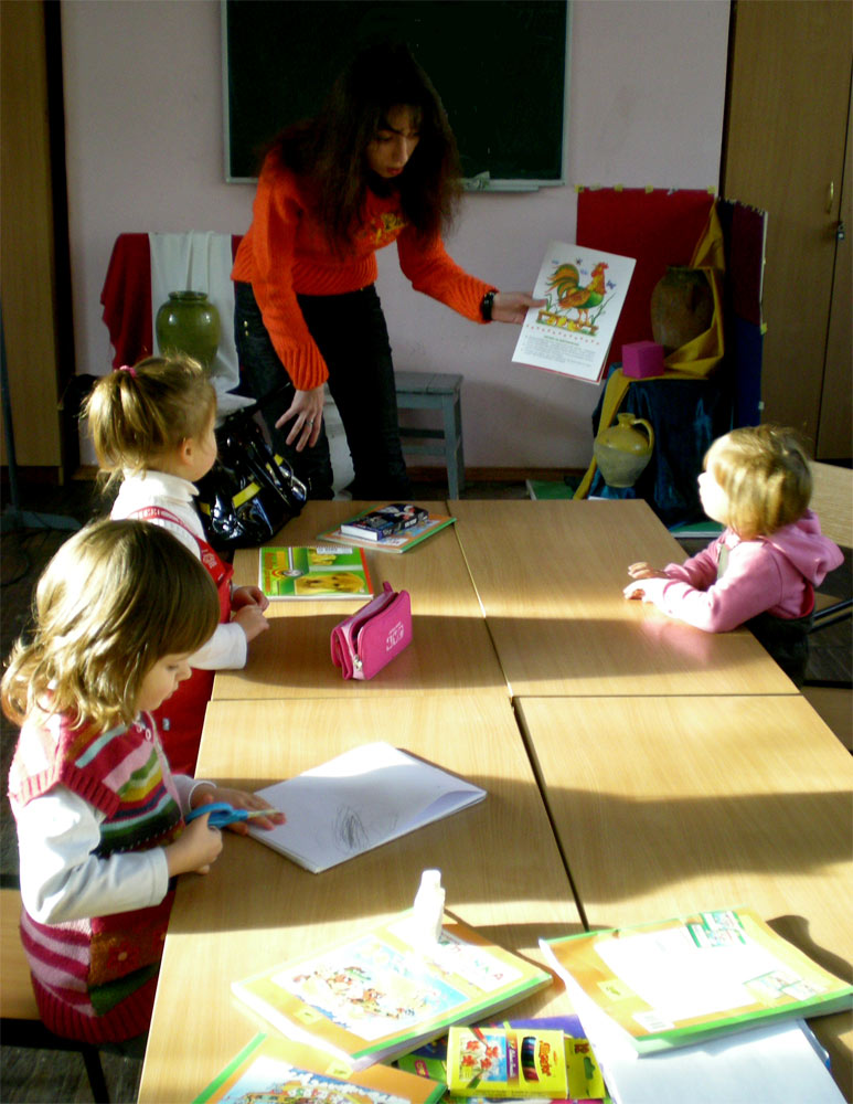 Дети приспосабливаются к коллективу, учатся работать в команде (социализация), развивается самостоятельное мышление, дошкольники получают творческие задания (развитие креативности), применяются ролевые игры. В процессе обучения очень важным является атмосфера положительных эмоций, позитива, гармонии, добродушия, хорошего настроения, впечатления. Дети развиваются и умственно, и физически. Активность на уроках проявляет каждый ученик.